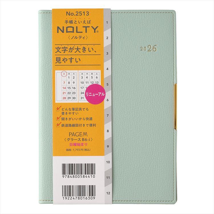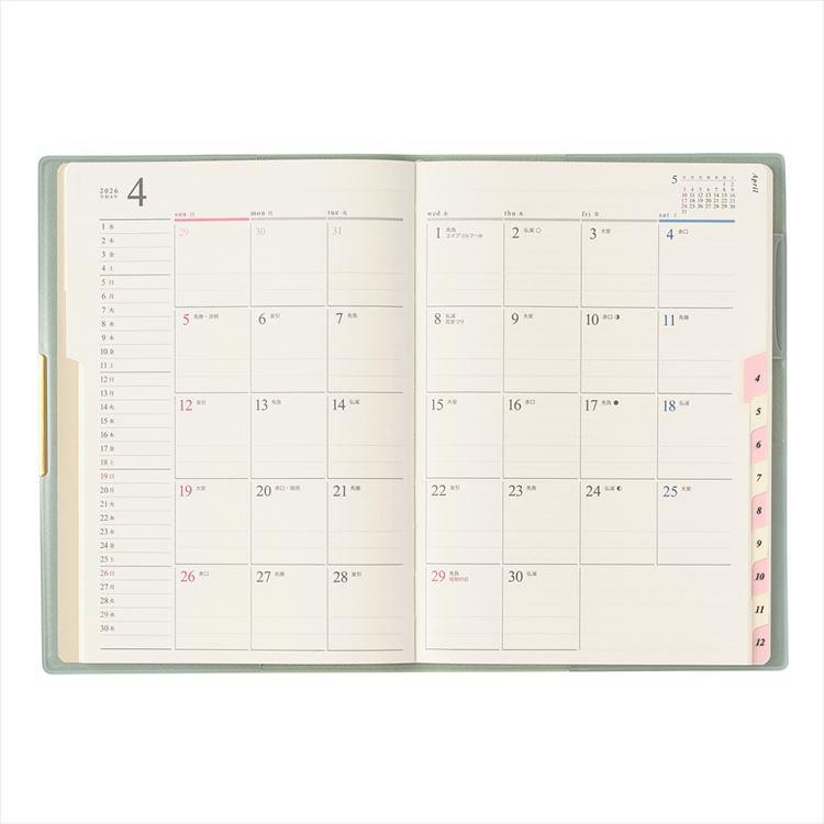 - 2026年1月始まり手帳 月間 B6 ペイジェム グラース ミントグリーン