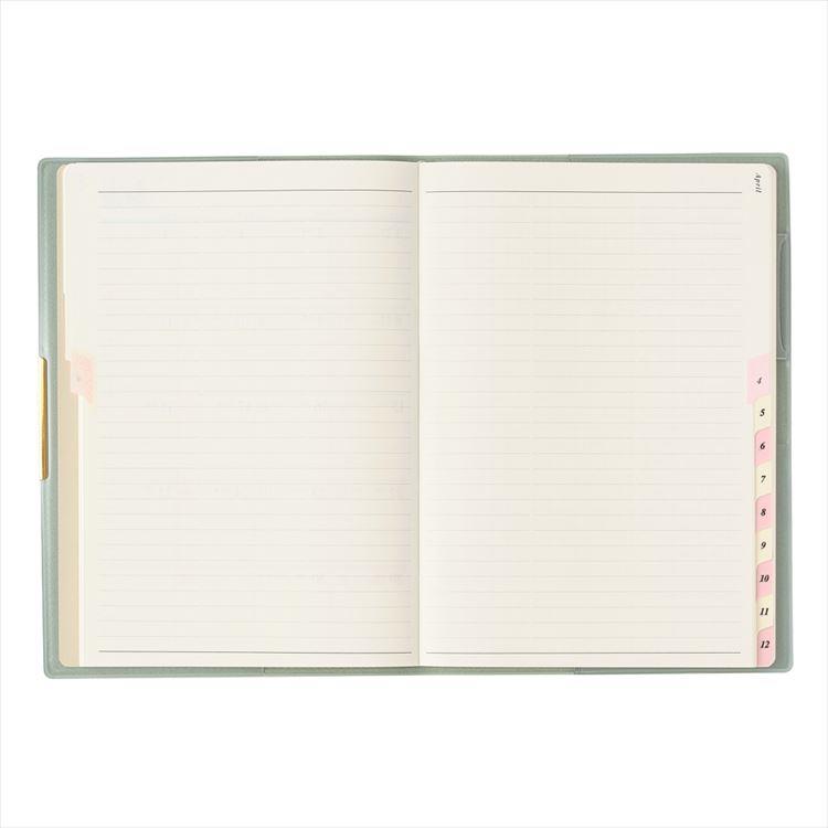 PAGEM by NOLTY(ペイジェム バイノルティ)のマンスリー手帳、グラースB6シリーズは、金具付きでステッチのような箔のデザインが縁に施されているエレガントな表紙が特長です。