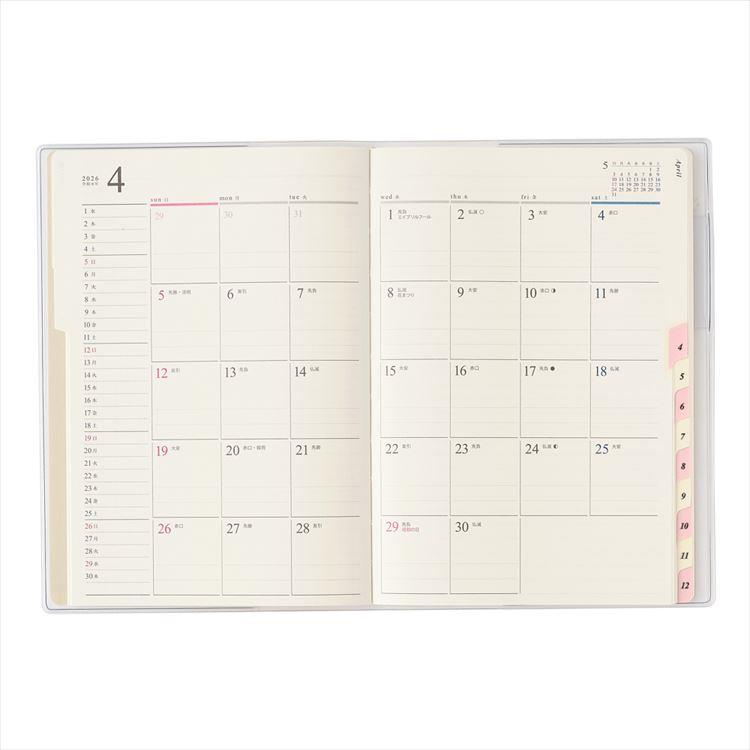 - 2026年1月始まり手帳 月間 B6 ペイジェム アイダにメモ ホワイト