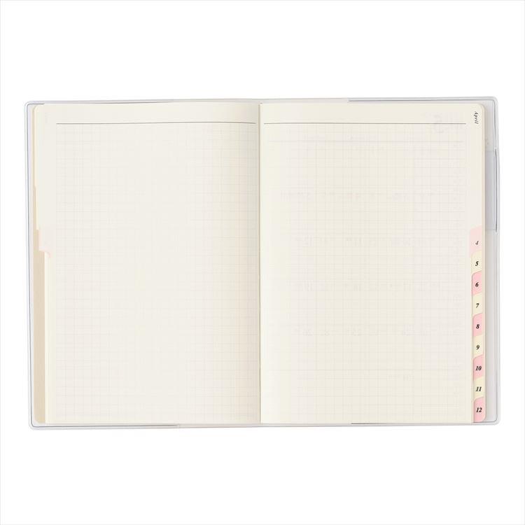 PAGEM by NOLTY(ペイジェム バイノルティ)のマンスリー手帳、B6-iアイダにメモシリーズは、各月のアイダにメモページと方眼ページが2ページずつ付いているのが特長です。
