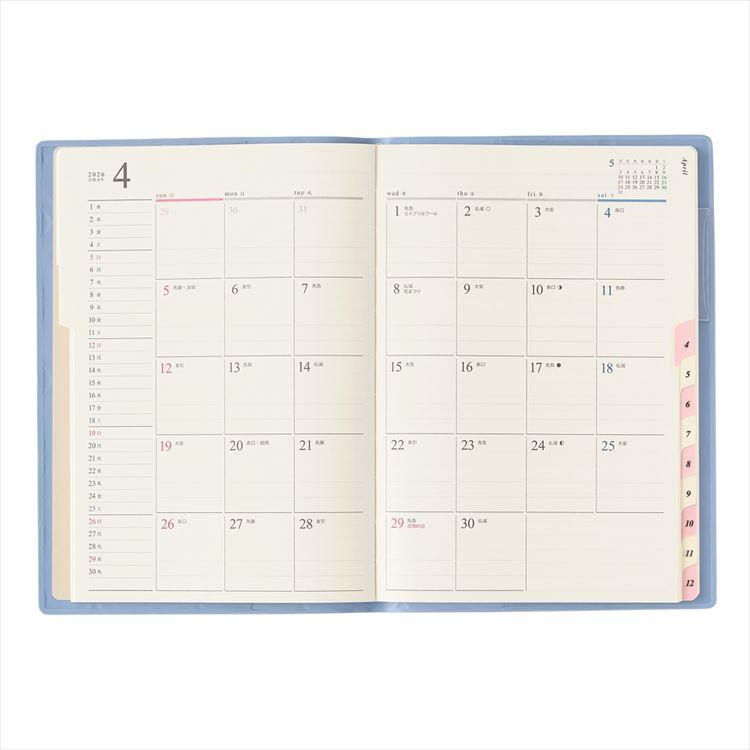 - 2026年1月始まり手帳 月間 B6 ペイジェム アイダにメモ ブルー