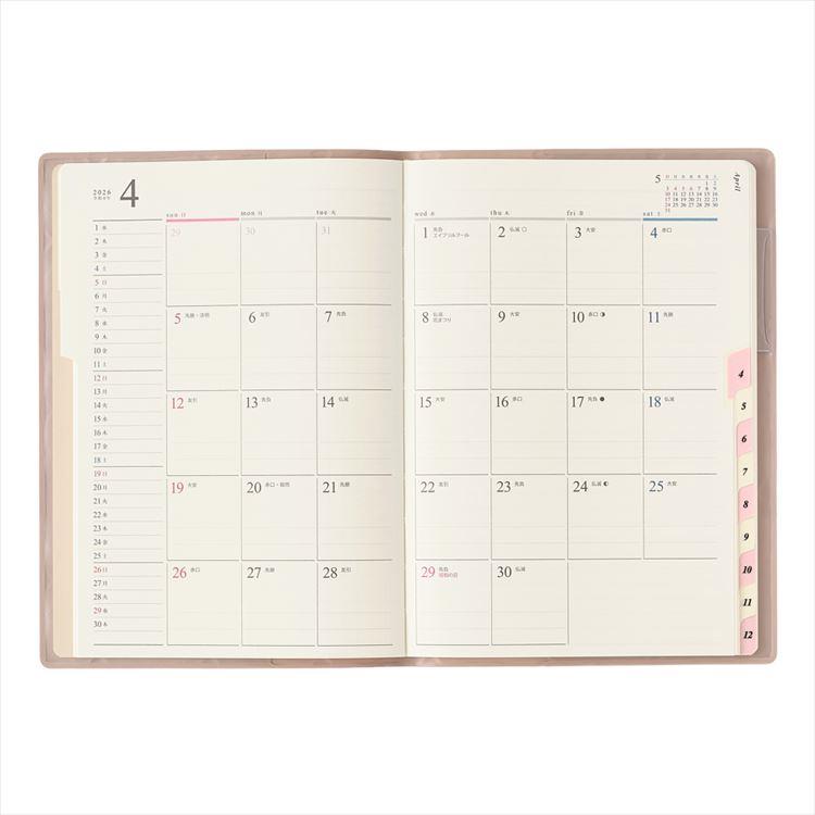 - 2026年1月始まり手帳 月間 B6 ペイジェム アイダにメモ ピンク