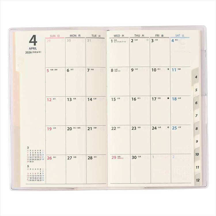 - 2026年1月始まり手帳 月間 B7 ペイジェム リュミエール スリム-i ピンク
