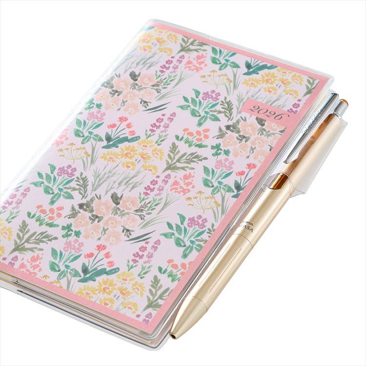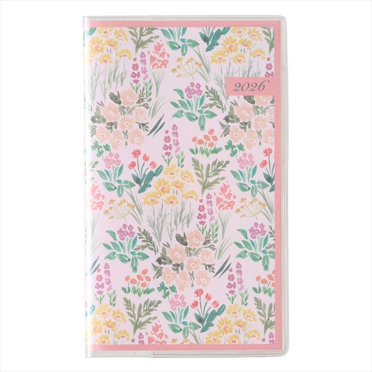 1ヵ月の予定をパッと見渡すことができ、スリムなので持ち運びの際にもかさばらない花柄手帳