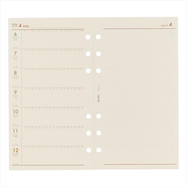 能率手帳の会社がつくるシステム手帳ブランドBindex by NOLTY (バインデックス バイ ノルティ)のリフィル(バイブルサイズ)。