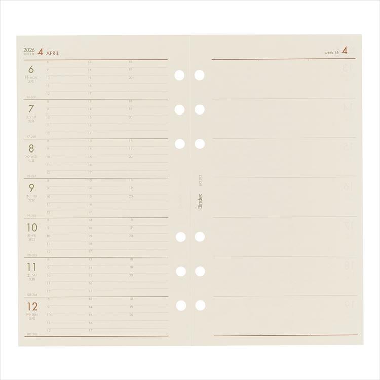 - 2025年12月始まりシステム手帳用リフィル バイブル 週間ダイアリー5 ゾーンタイプ