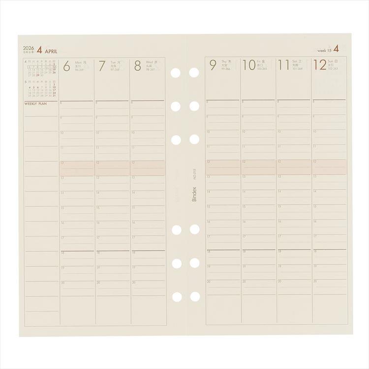 能率手帳の会社がつくるシステム手帳ブランドBindex by NOLTY (バインデックス バイ ノルティ)のリフィル(バイブルサイズ)。メモスペース付日記欄。