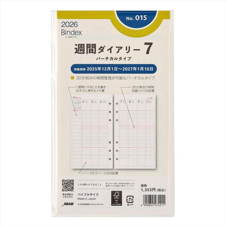 - 2025年12月始まりシステム手帳用リフィル バイブル 週間ダイアリー7 バーチカルタイプ