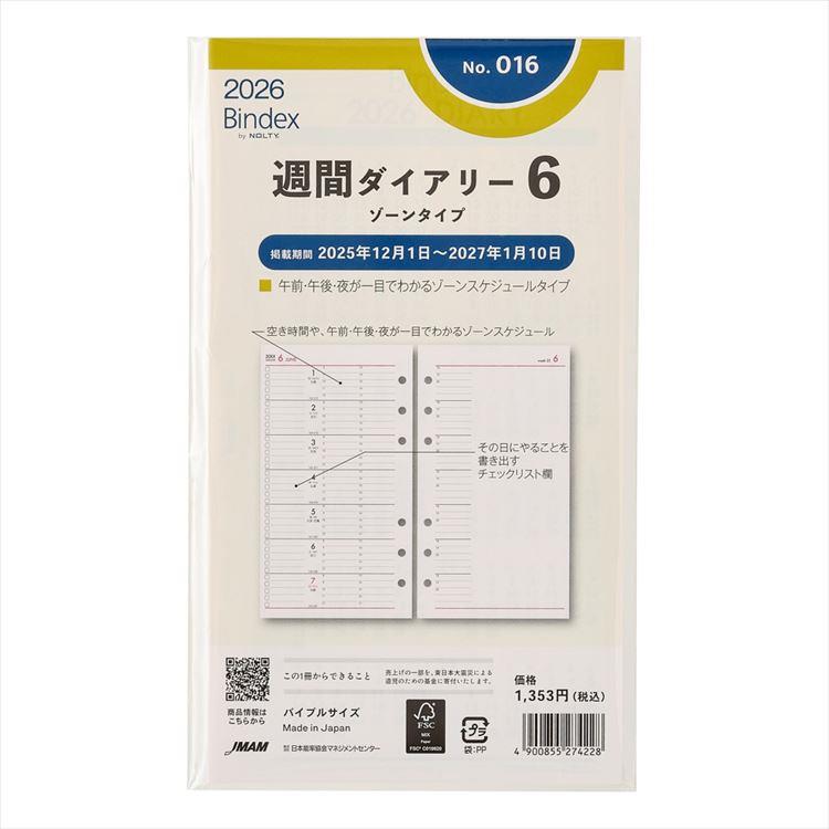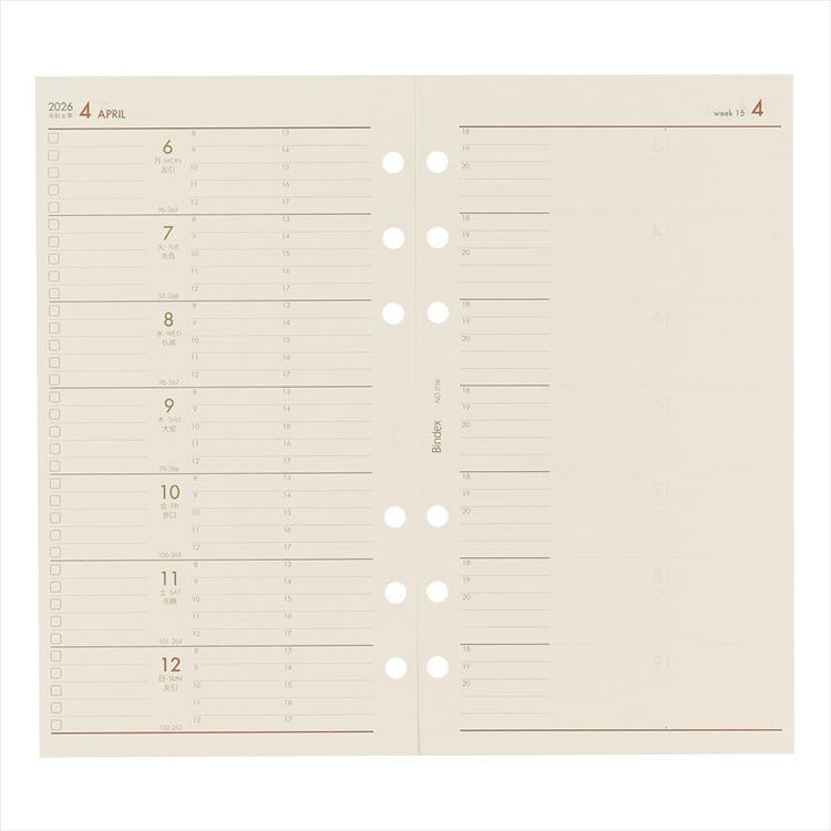 - 2025年12月始まりシステム手帳用リフィル バイブル 週間ダイアリー6 ゾーンタイプ
