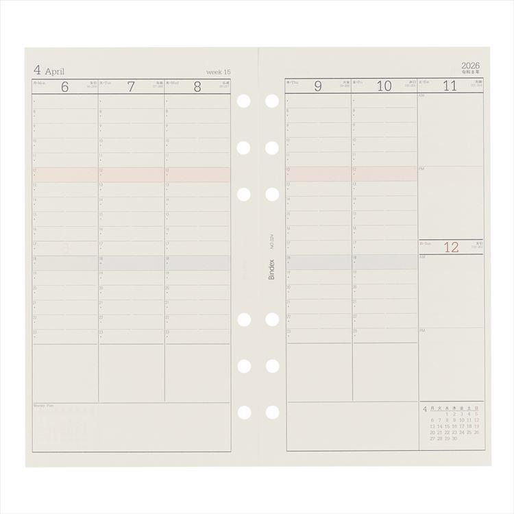 ウィークデー重視型バーチカルタイプのシステム手帳用リフィル