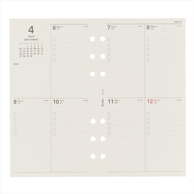 - 2025年12月始まりシステム手帳用リフィル バイブル 週間ダイアリー10 ブロックタイプ