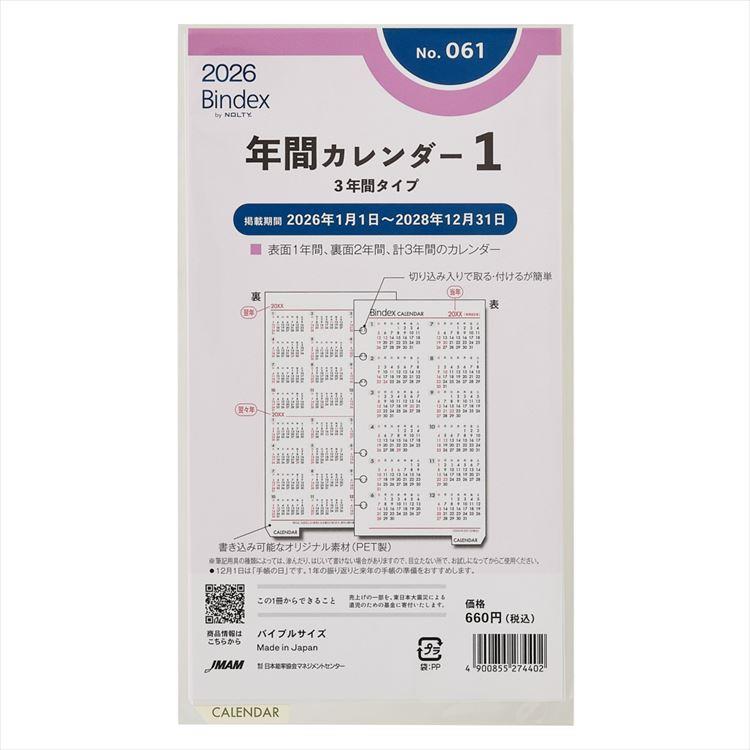 - 2026年1月始まりシステム手帳用リフィル バイブル 年間カレンダー1 3年間タイプ