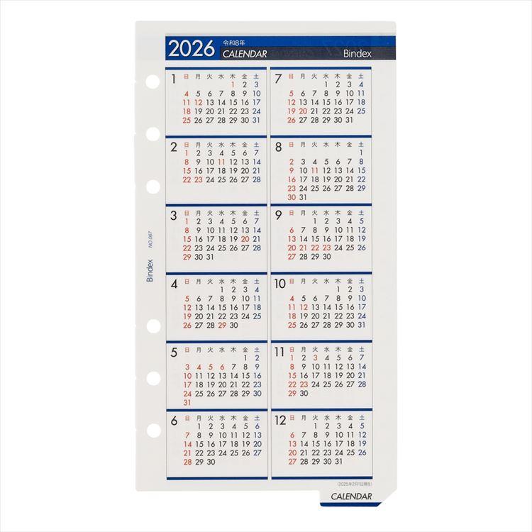 長年愛されているブランド、Bindex by NOLTY (バインデックス バイ ノルティ)のバイブルサイズシステム手帳用年間カレンダー。