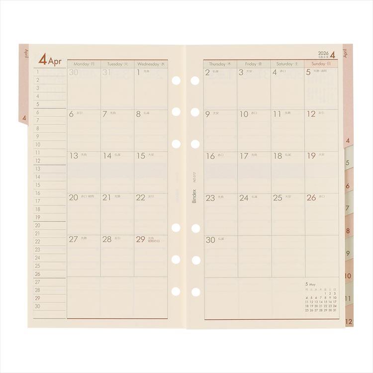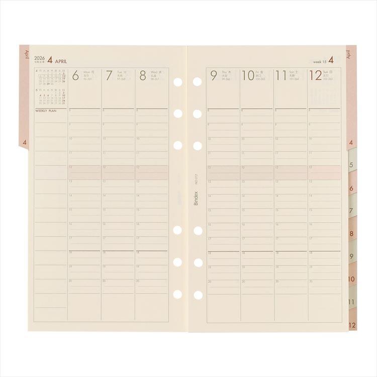 - 2026年1月始まりシステム手帳用リフィル バイブル 月間&週間ダイアリー2 カレンダー+バーチカルタイプ
