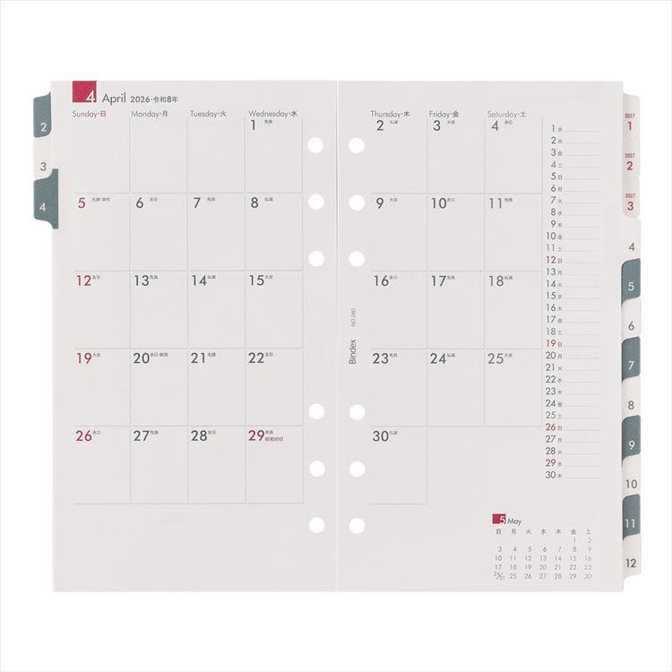 - 2025年12月始まりシステム手帳用リフィル バイブル 月間ダイアリー10 カレンダータイプ インデックス付き
