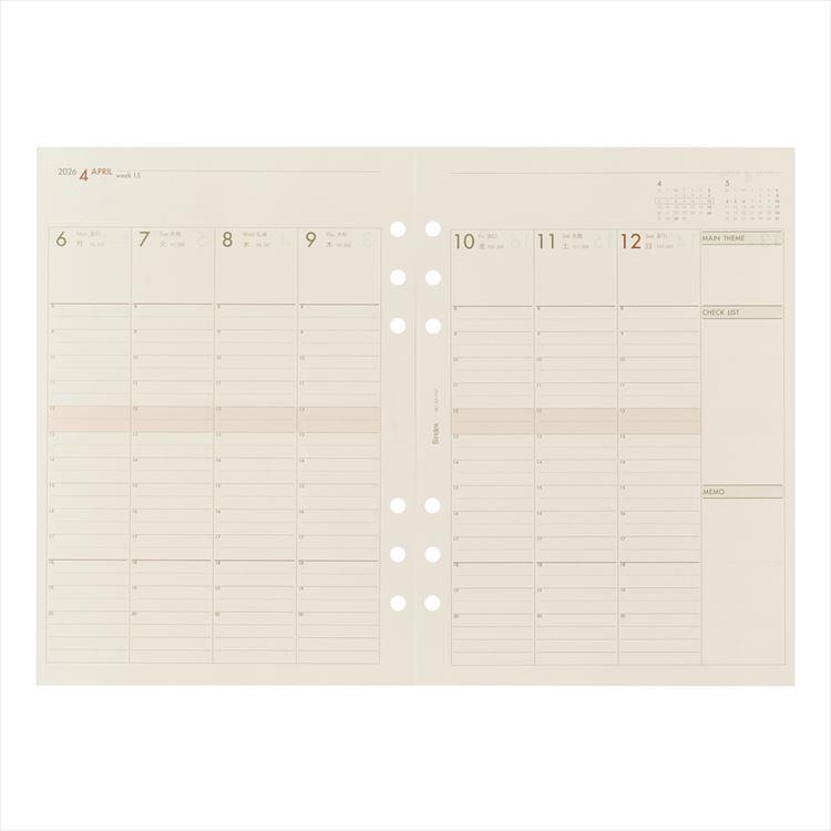 - 2025年12月始まりシステム手帳用リフィル A5 週間ダイアリー2 バーチカルタイプ