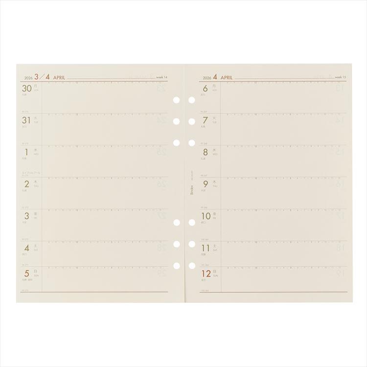 - 2026年1月始まりシステム手帳用リフィル A5 2週間ダイアリー1 時間メモリ入り横ケイタイプ