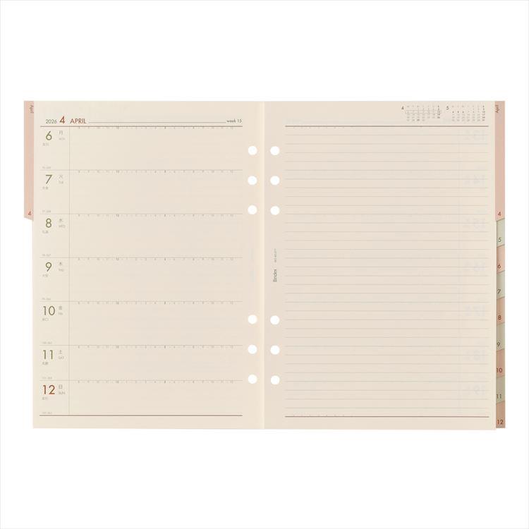 - 2026年1月始まりシステム手帳用リフィル A5 月間&週間ダイアリー1 レフトタイプ