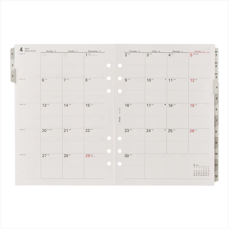 - 2025年12月始まりシステム手帳用リフィル A5 月間ダイアリー8 カレンダータイプ