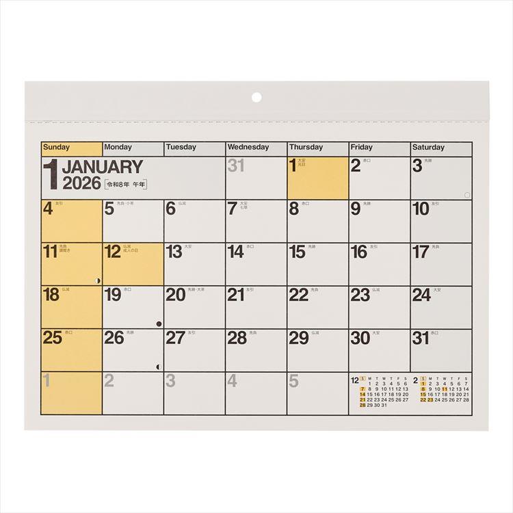 2026年1月始まりカレンダー 壁掛け A4横 C117