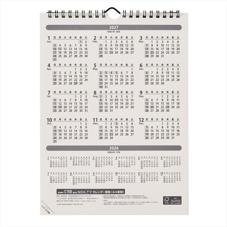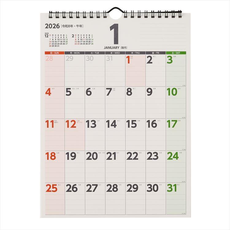 2026年1月始まりカレンダー 壁掛け A4変型 C158