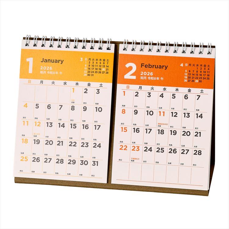 2026年1月始まりカレンダー 卓上 A6変型 2ヵ月一覧 C249