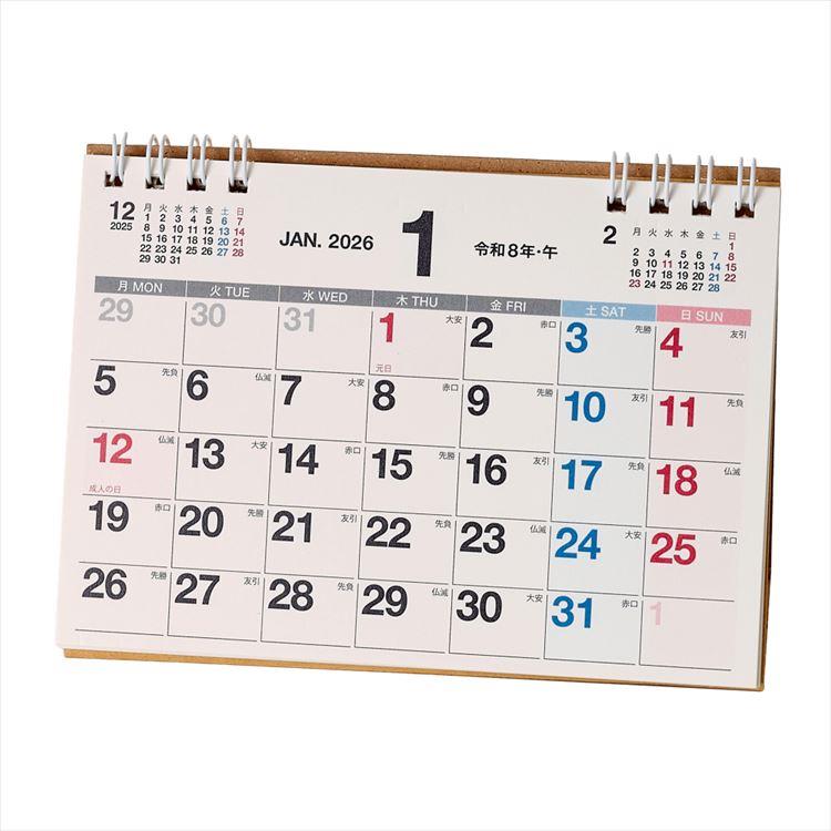 2026年1月始まりカレンダー 卓上 A7横 月曜始まり C258