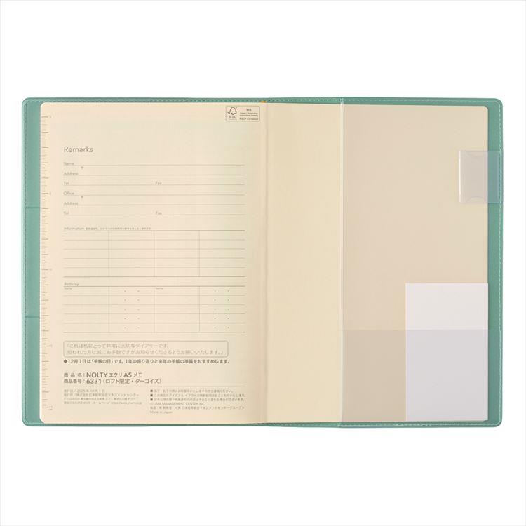 - 2026年1月始まり手帳 週間ブロック A5 NOLTY エクリメモ ターコイズ【ロフト限定】