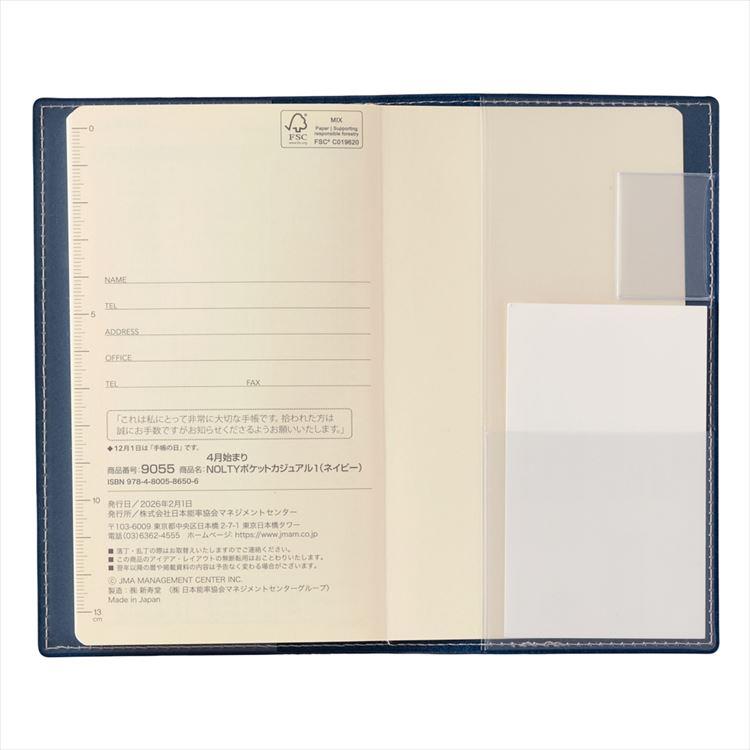 2026年4月始まり手帳 週間レフト B7 NOLTY ポケットカジュアル1 ネイビー