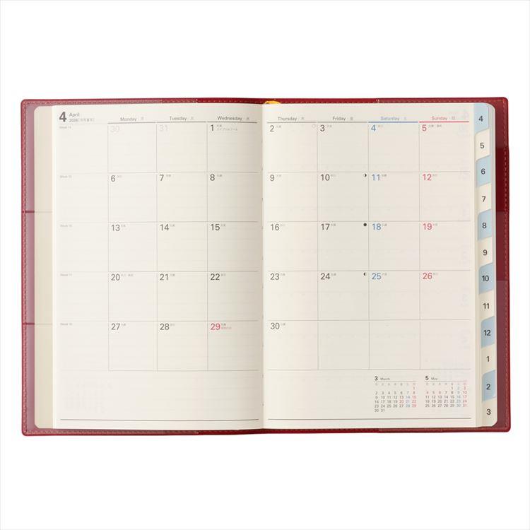 - 2026年4月始まり手帳 週間レフト B6 NOLTY キャレル2 レッド