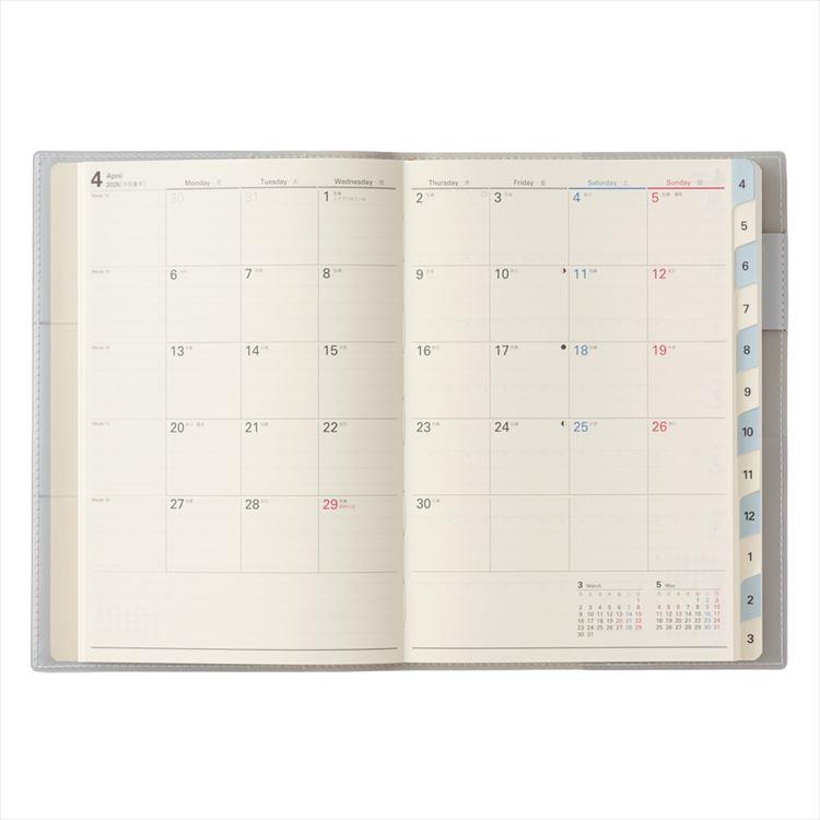 ビジネスにもおすすめ。シンプルな切り込みインデックス付きウィークリー手帳B6サイズ