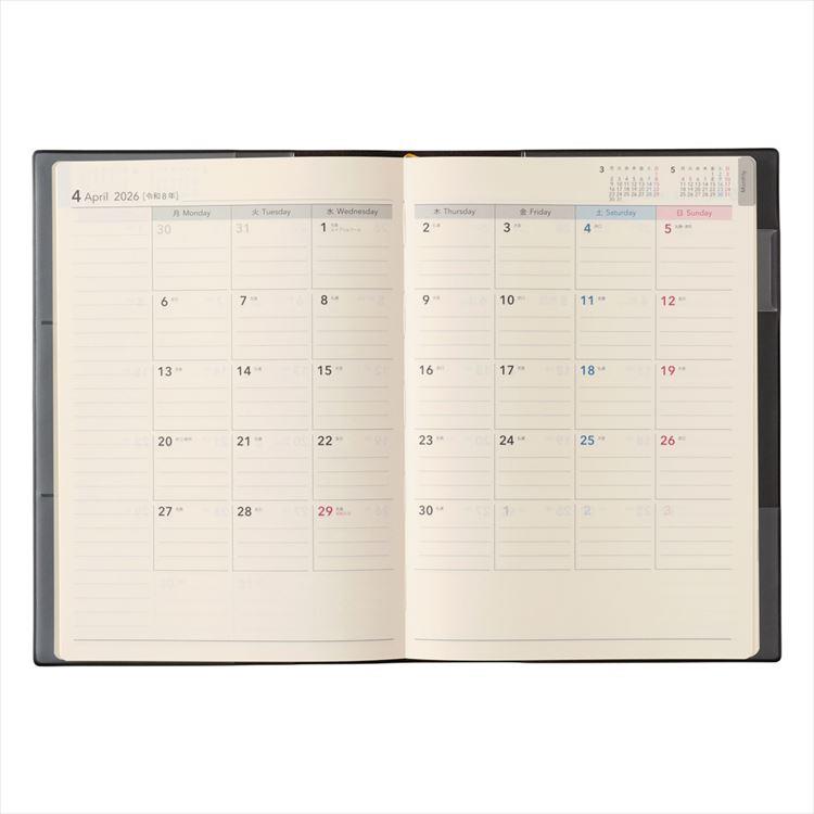 月間ページと週間ページはエクリA5と同じレイアウトなので定番のビジネス手帳をお求めの方にもおすすめ。