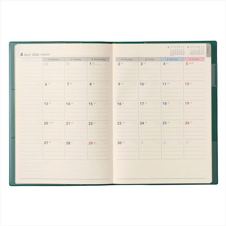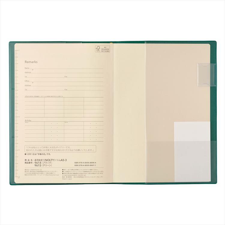 2026年4月始まり手帳 週間バーチカル A5 NOLTY トリム3 グリーン