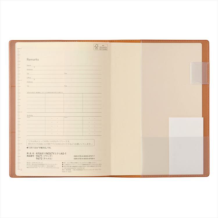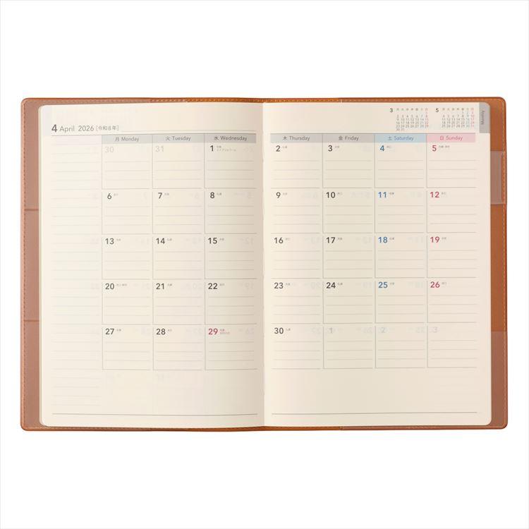 - 2026年4月始まり手帳 週間レフト A5 NOLTY エクリ1 キャメル