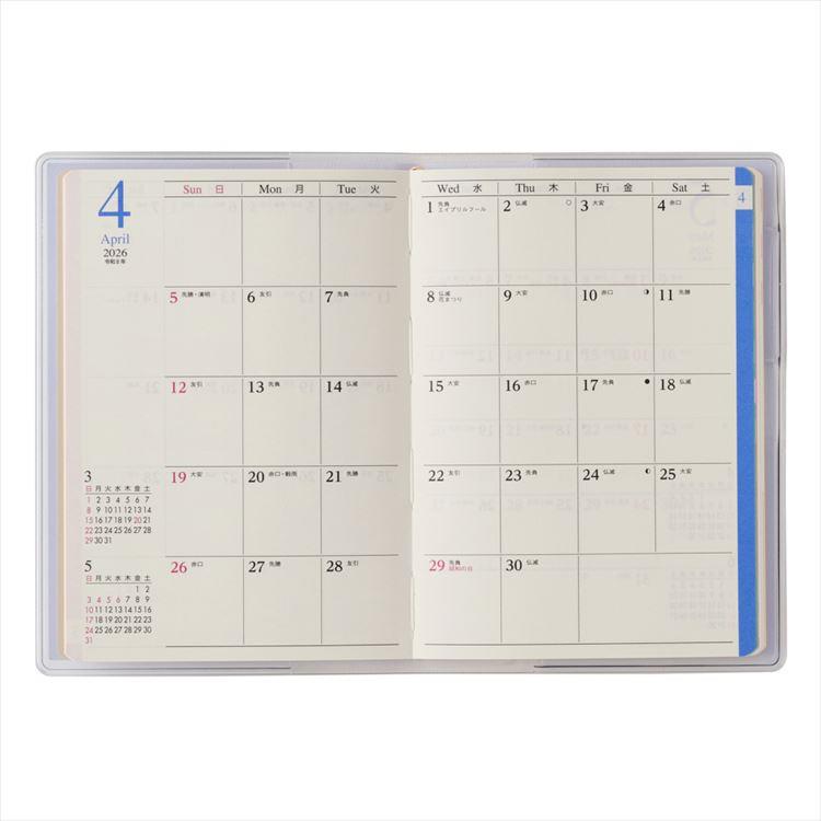 カレンダー感覚で月ごとの予定が把握しやすいのが特徴で、見たいページをパッと開けるインデックス付き。
