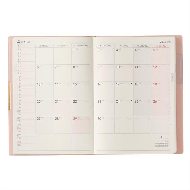 - 2026年4月始まり手帳 週間ブロック B6 NOLTY エクリ Plus パウダーピンク