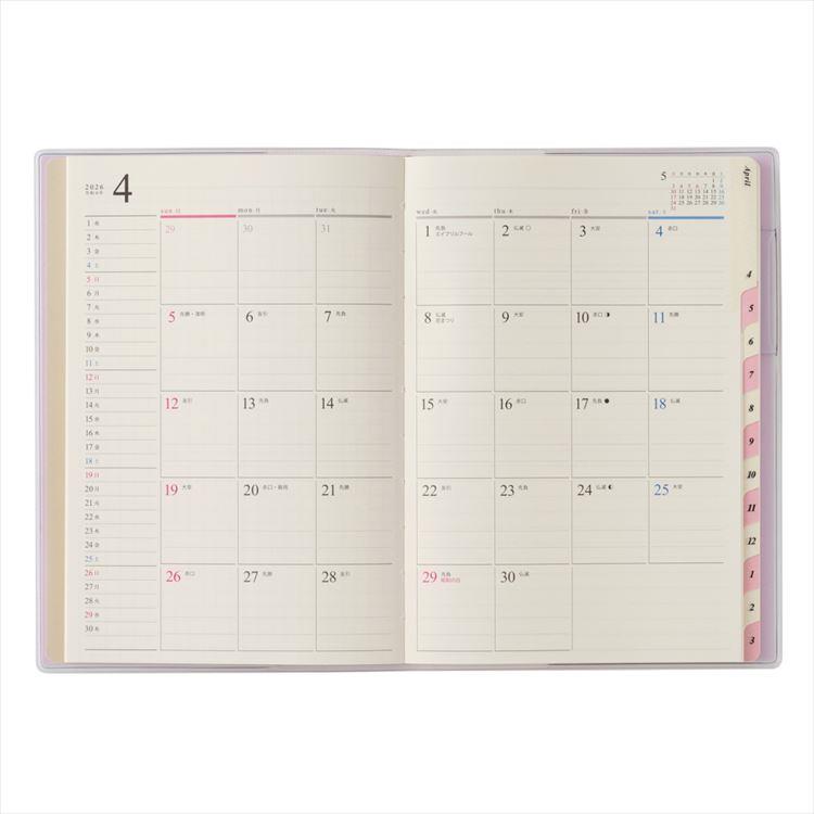 - 2026年4月始まり手帳 月間 B6 ペイジェム アイダにメモ 日曜始まり ラベンダー