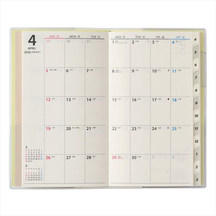 軽くてかさばらないインデックス付きノルティマンスリー日曜始まり手帳