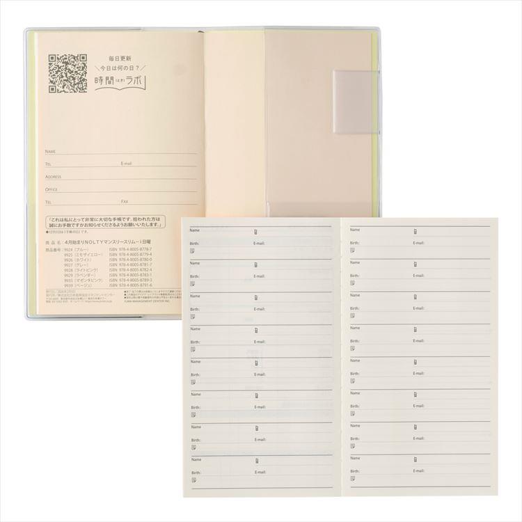 2026年4月始まり手帳 月間 B7 NOLTY スリム-i 日曜始まり ミモザイエロー