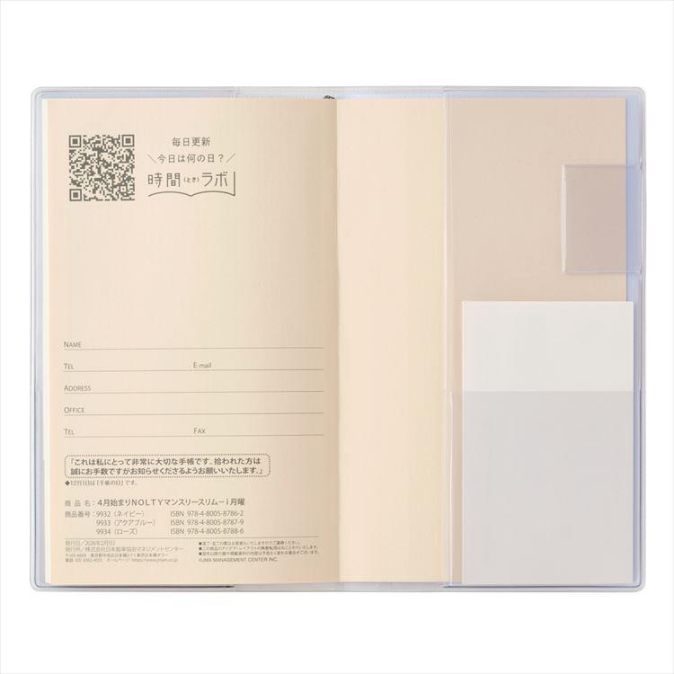2026年4月始まり手帳 月間 B7 NOLTY スリム-i アクアブルー