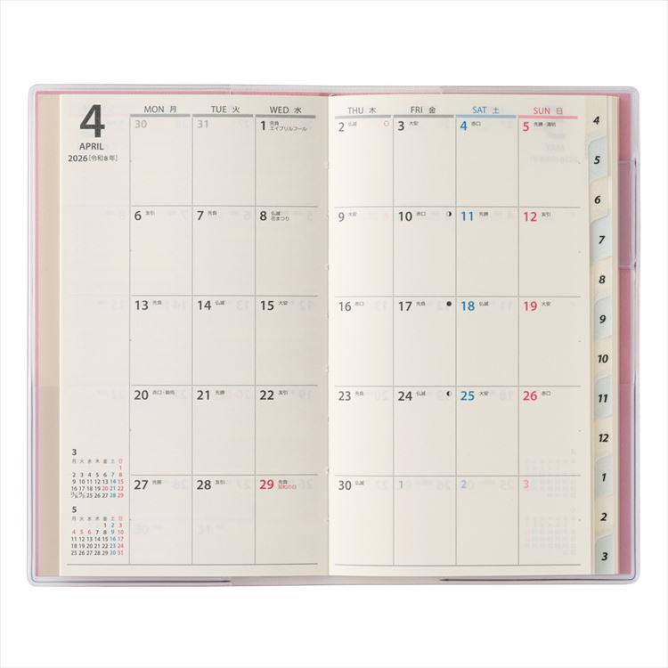 - 2026年4月始まり手帳 月間 B7 NOLTY スリム-i ローズ