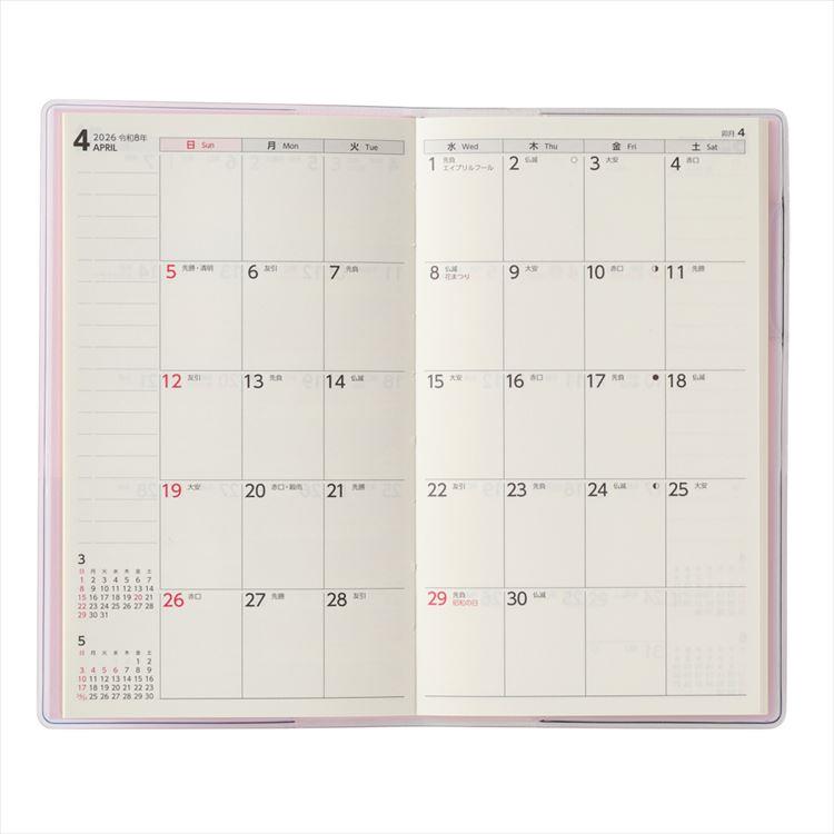 - 2026年4月始まり手帳 月間 B7 NOLTY スリム 日曜始まり ピンク