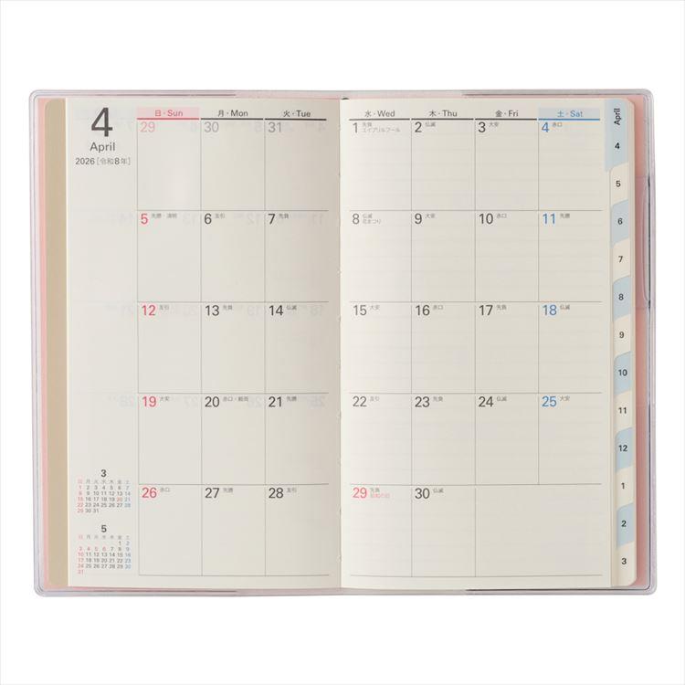 - 2026年4月始まり手帳 月間 A6 ペイジェム リュミエール たっぷりスリム-i 日曜始まり ピンク
