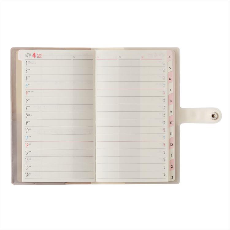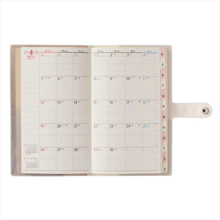 - 2026年4月始まり手帳 月間 A6 ペイジェム ファミリー ポーチ たっぷりスリム-i 日曜始まり パールべージュ