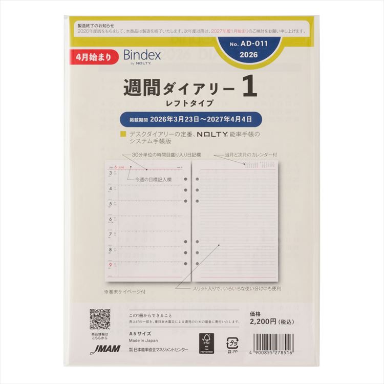 2026年版をもちまして、4月始まりのダイアリーリフィールは製造終了となります。