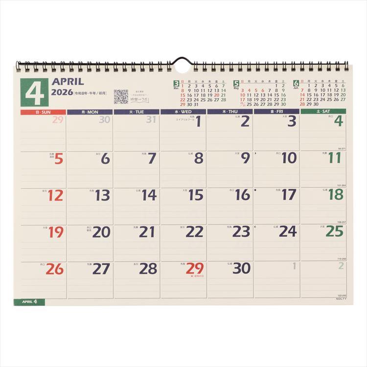 - 2026年4月始まりカレンダー 壁掛け B4 NOLTY 横型(U115)