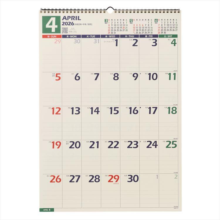 2026年4月始まりカレンダー 壁掛け B3 NOLTY 縦型(U129)