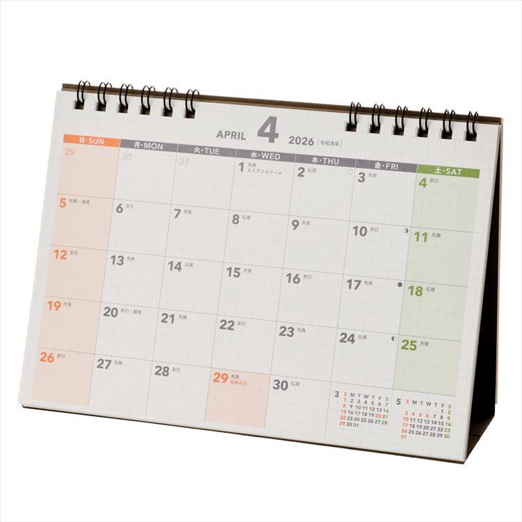 2026年4月始まりカレンダー 卓上 B6 NOLTY 横型 方眼(U265)