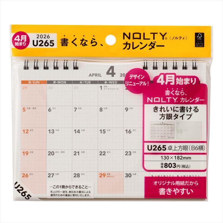 - 2026年4月始まりカレンダー 卓上 B6 NOLTY 横型 方眼(U265)