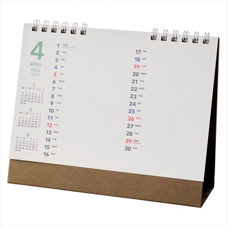 2026年4月始まりカレンダー 卓上 B6 NOLTY 横型 インデックス 月曜始まり(U266)